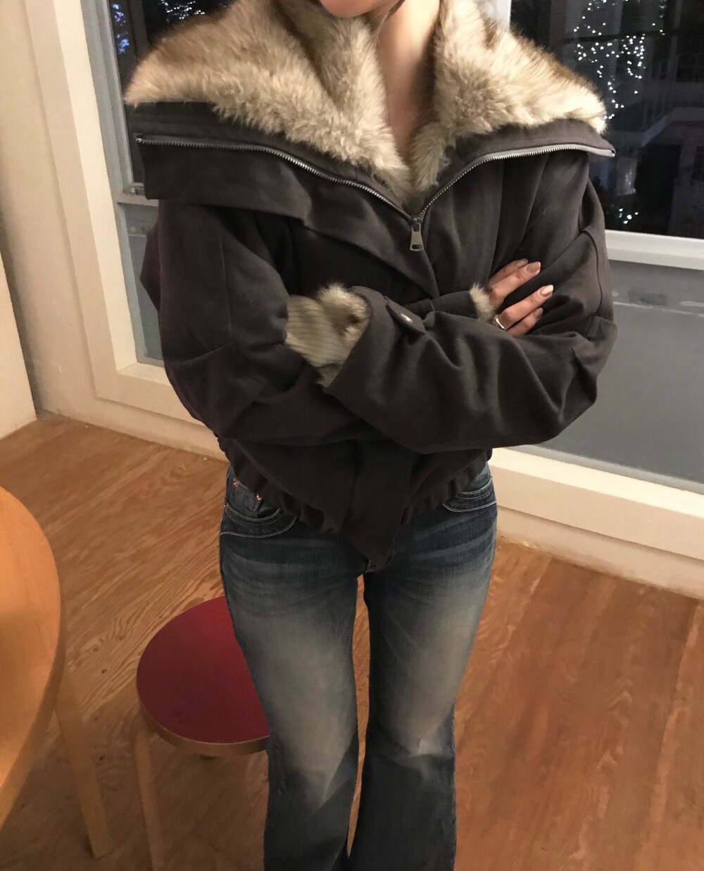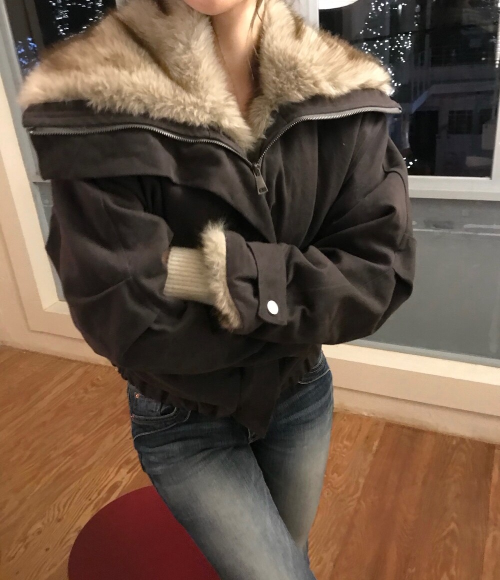 풍성한 라쿤 퍼가 매력적인 코튼 퍼 자켓입니다