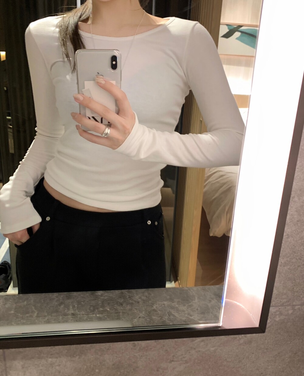 아우터 안에 입어도 편하게 착용 가능한 상품입니다
