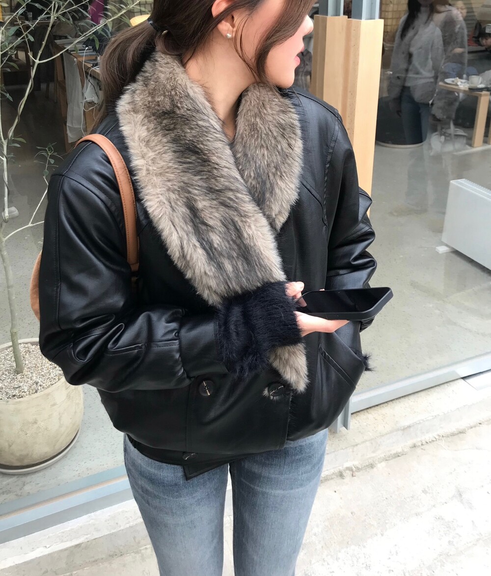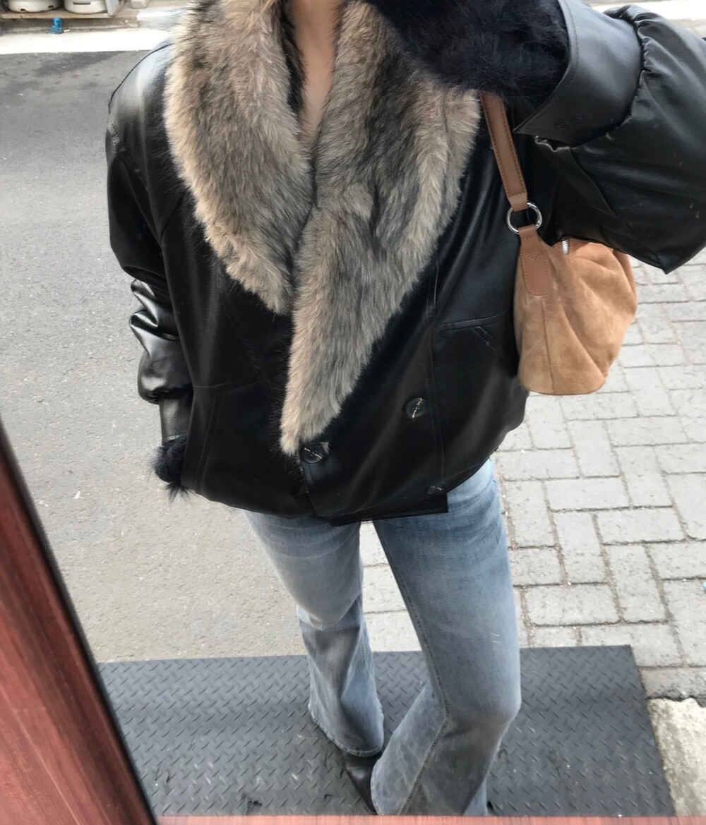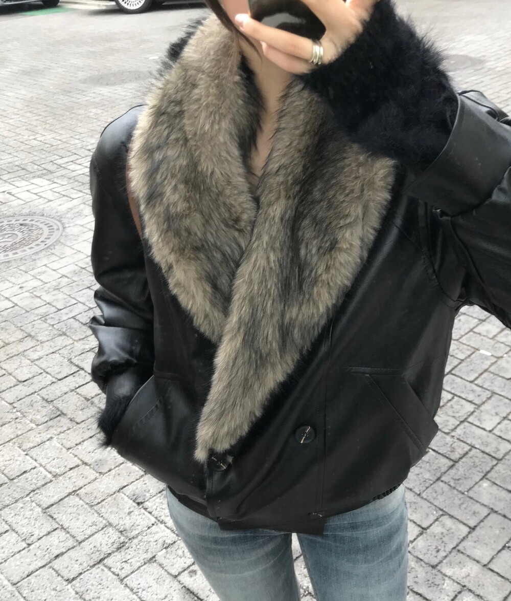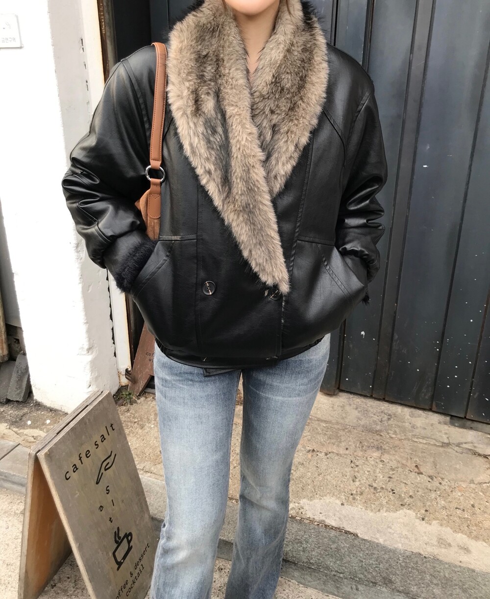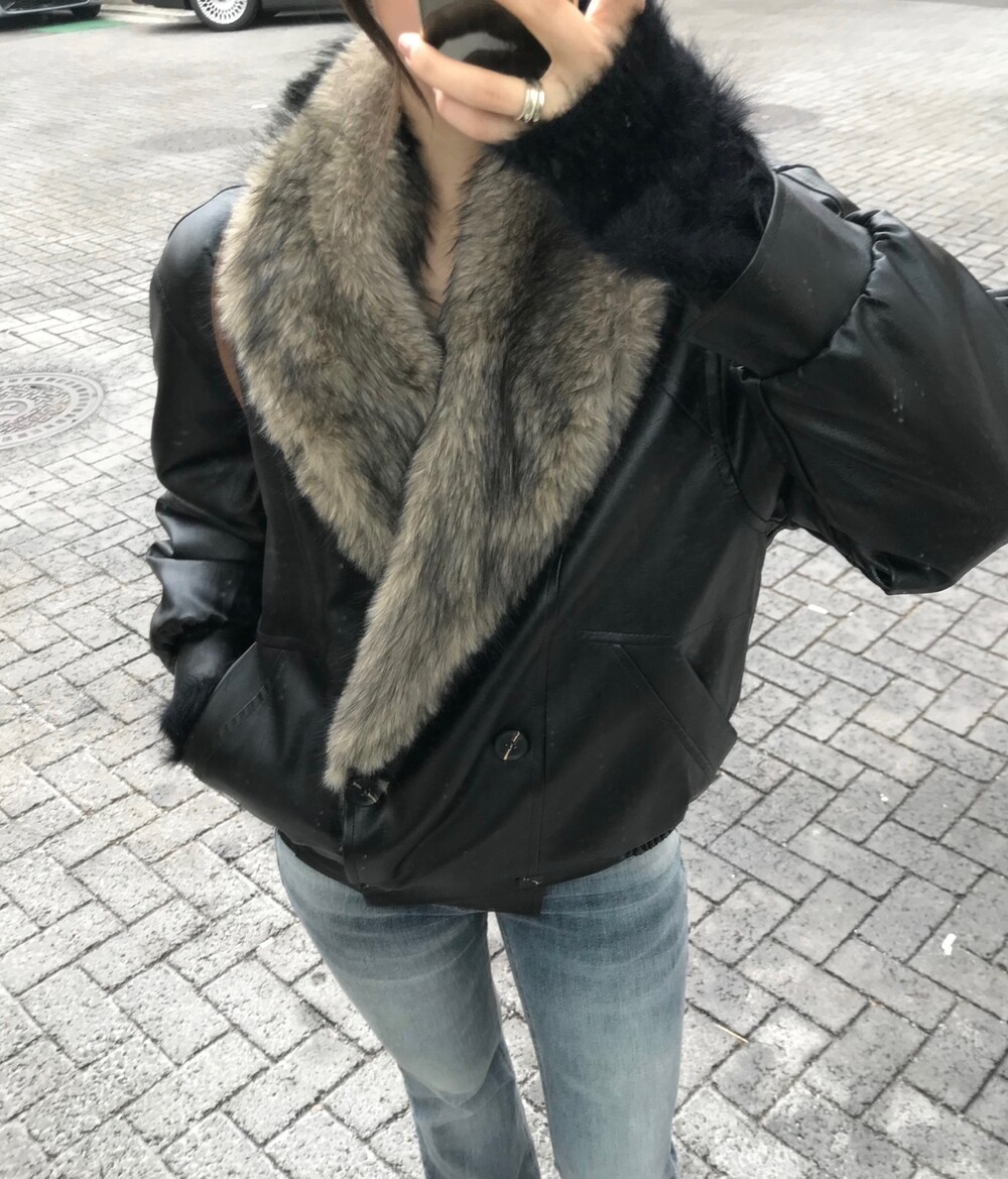 레더 블루종 디자인에 전체 퍼 안감이 더해진 자켓입니다
