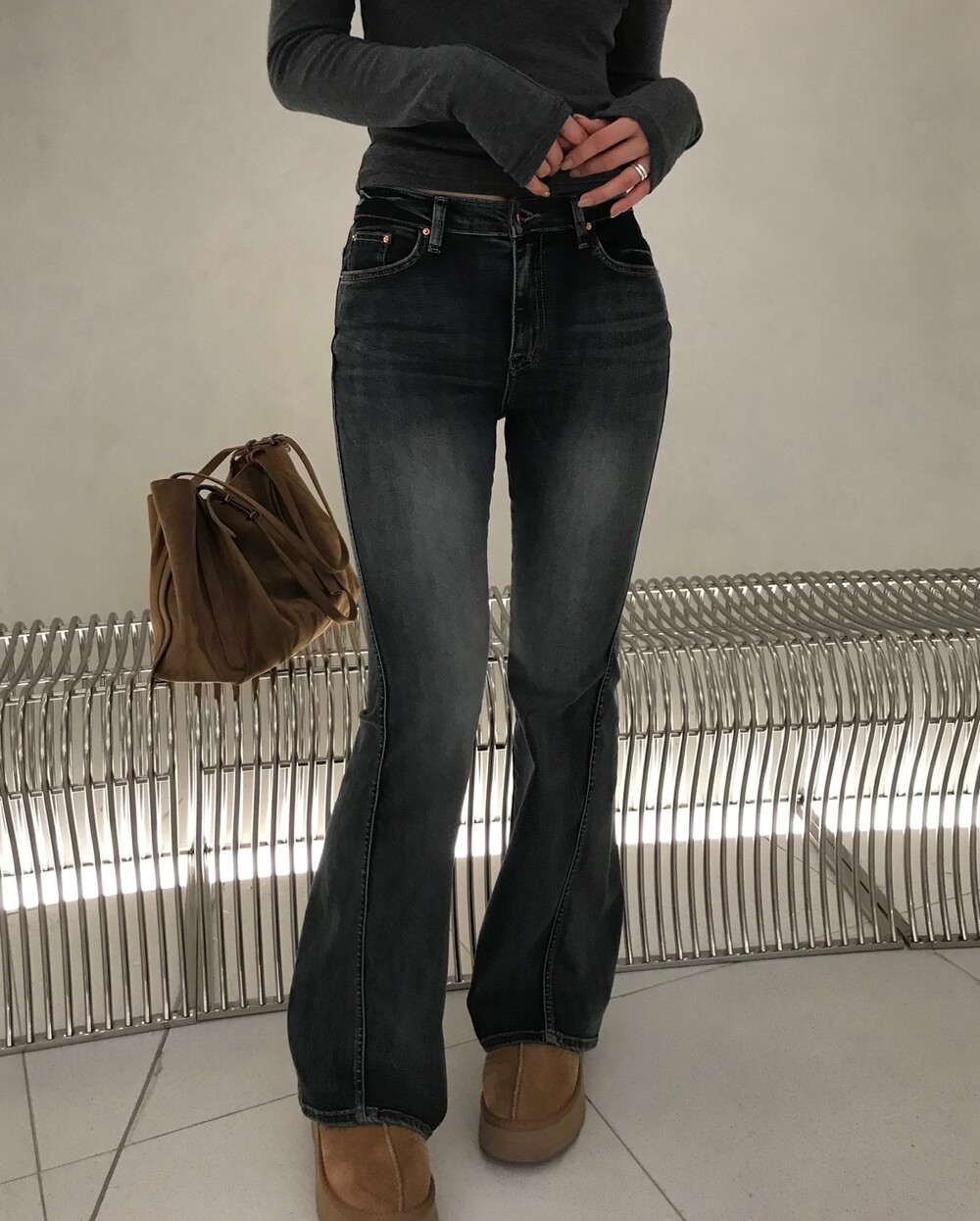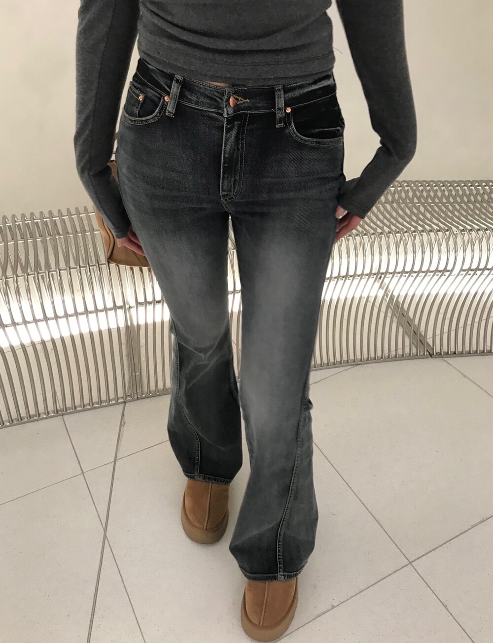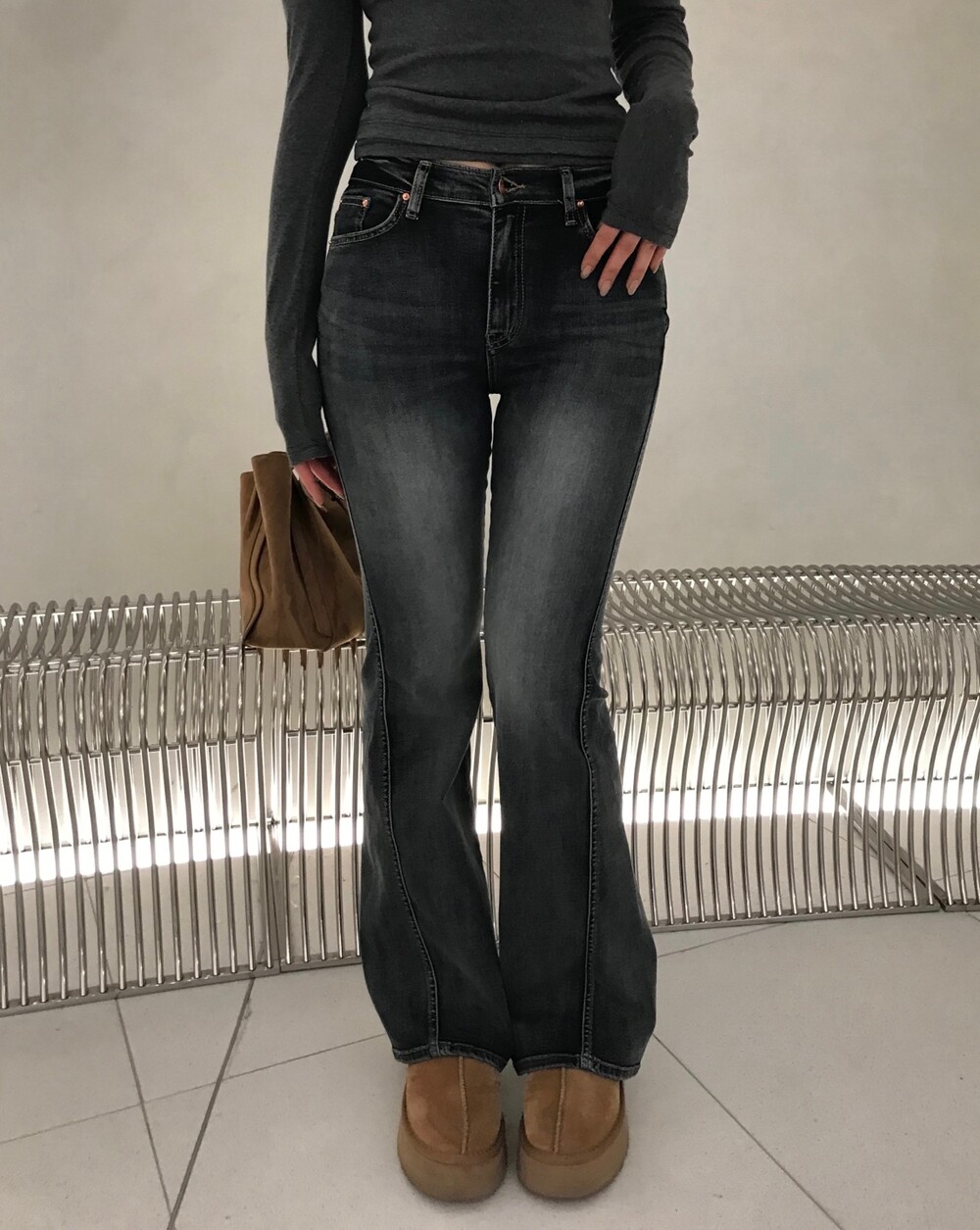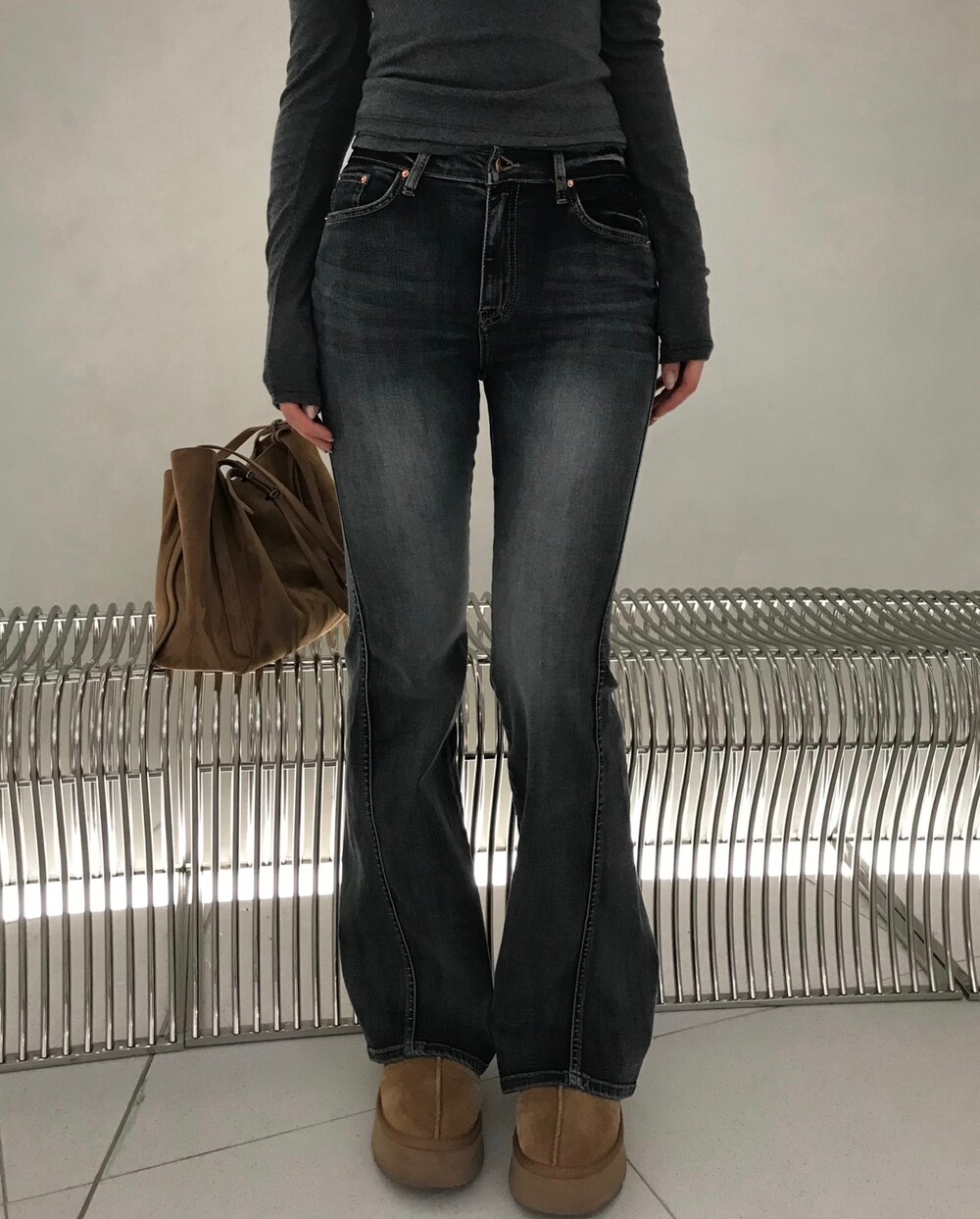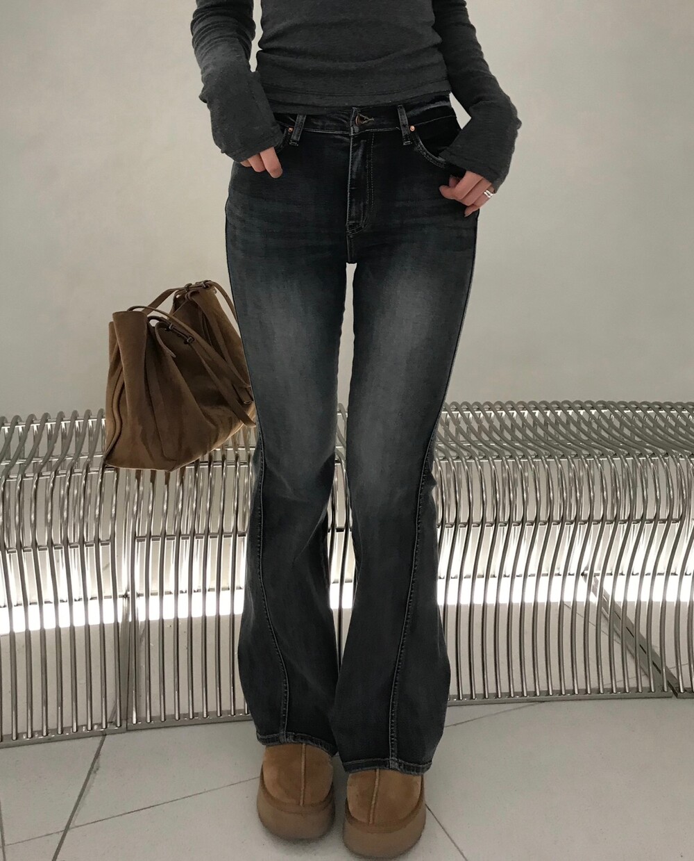 사이드 절개 디테일이 매력적인 부츠컷 데님입니다