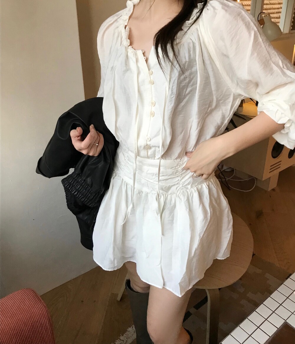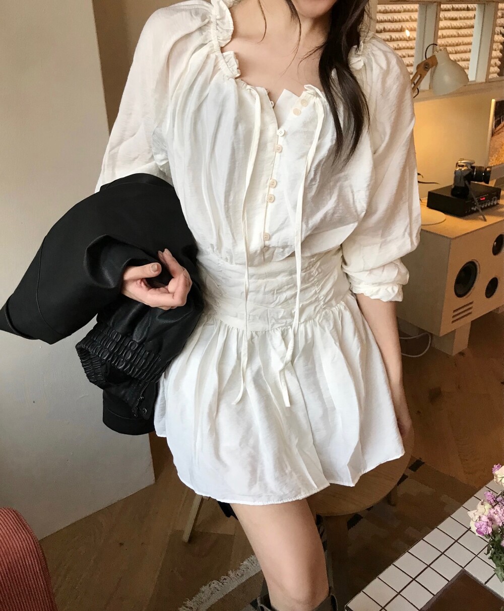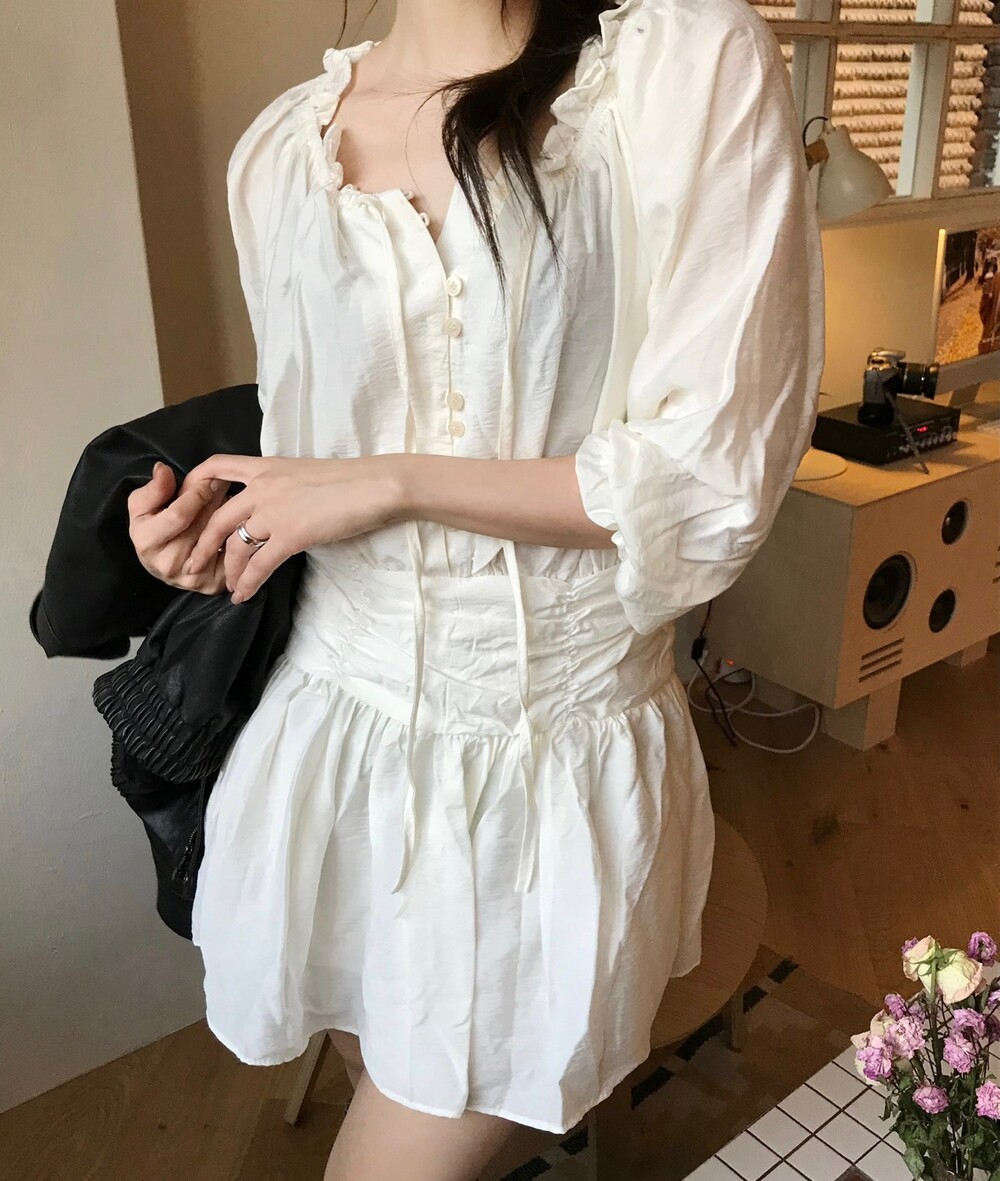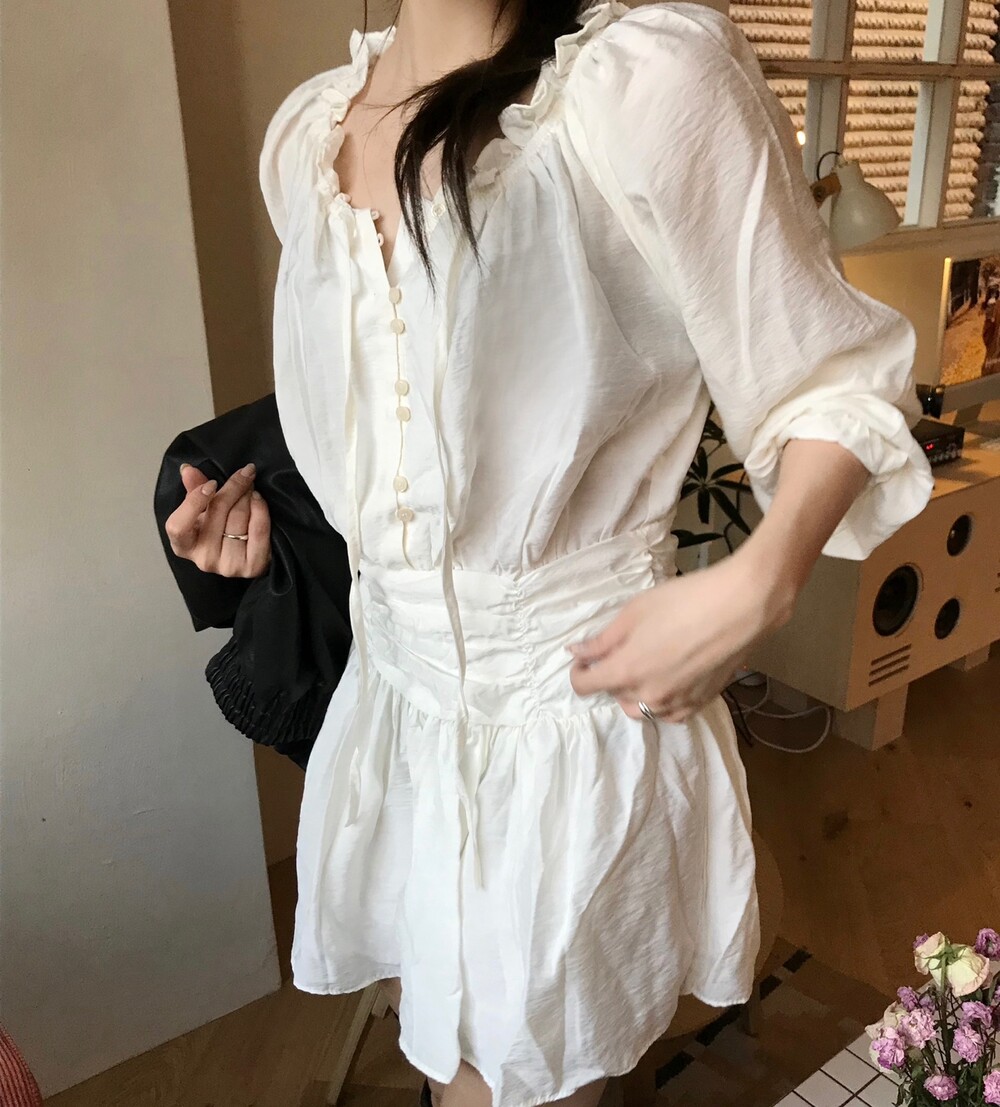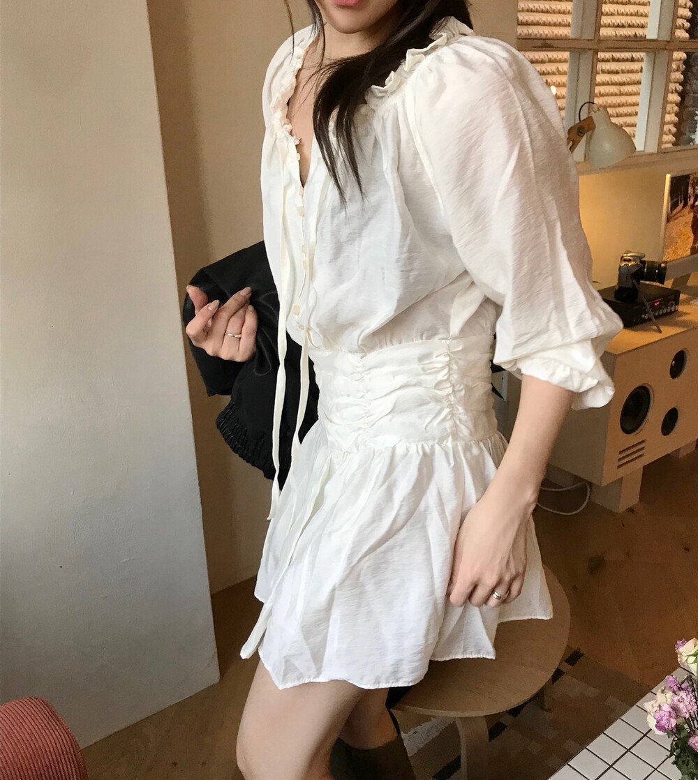 프릴과 셔링 디테일들이 매력적인 원피스입니다