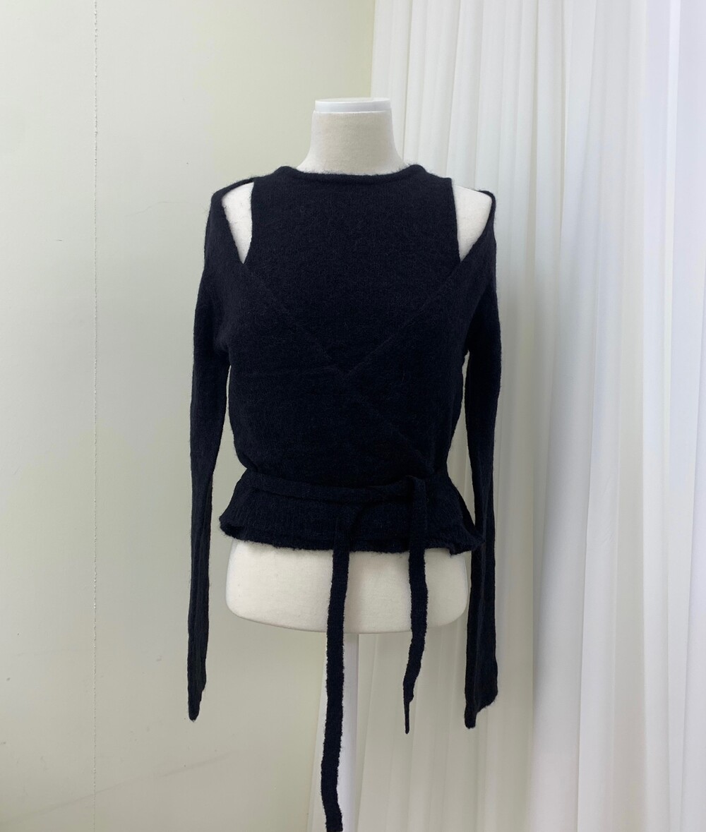 한쪽 허리끈 통과하여 랩 형식으로 착용하게 되어있습니다