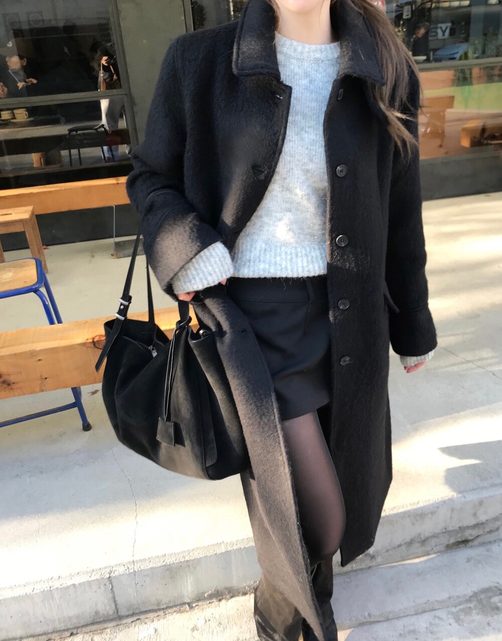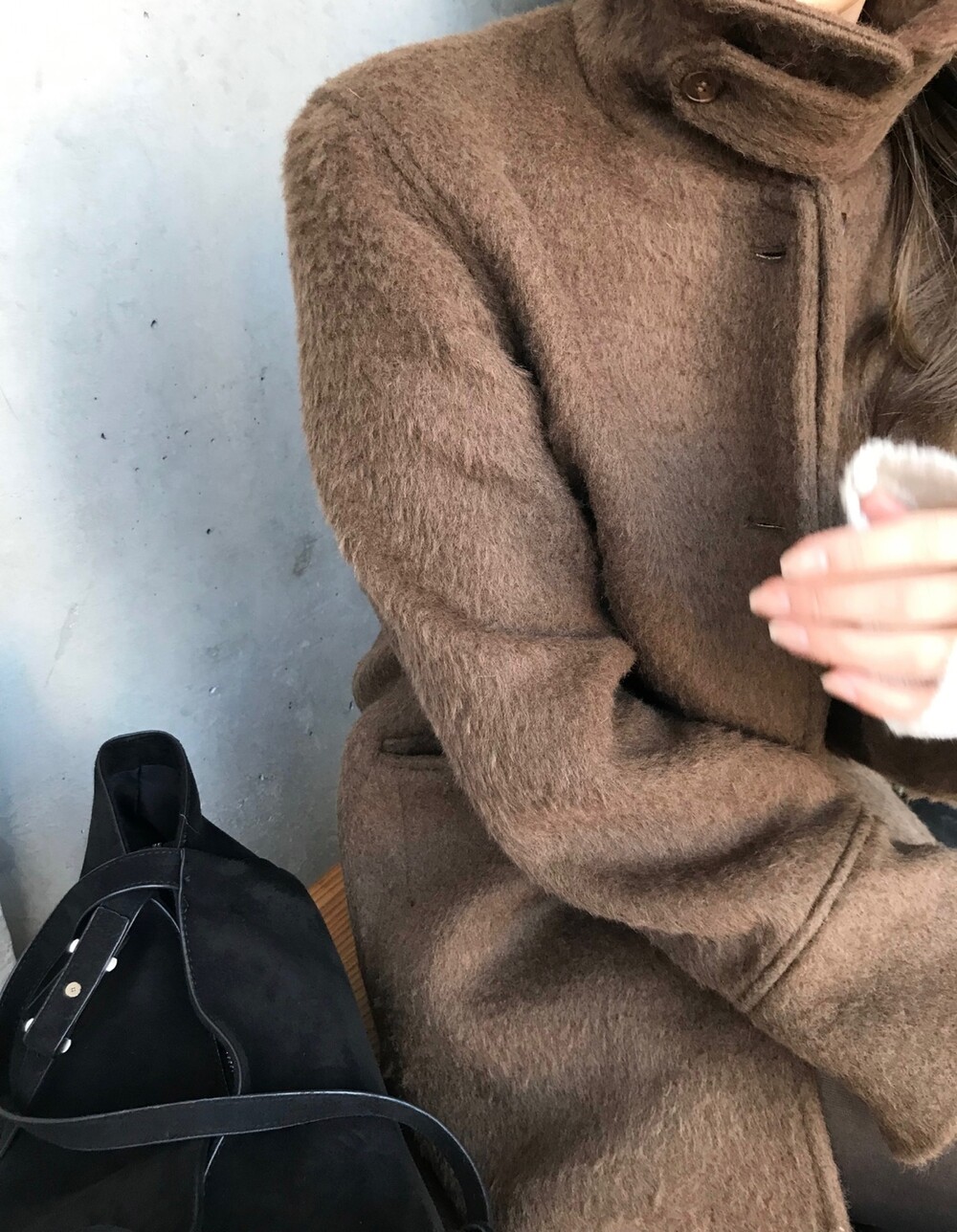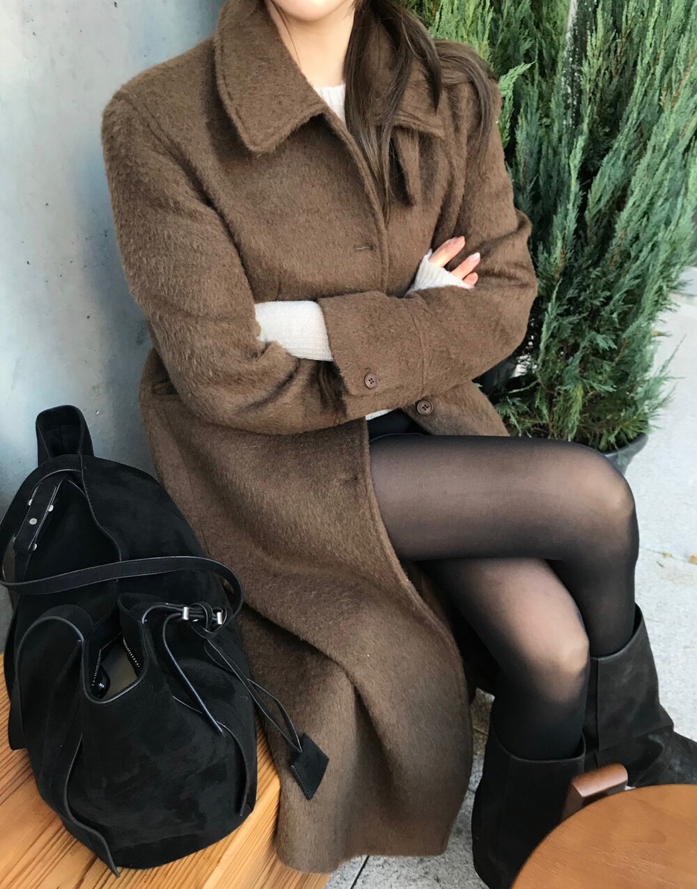 헤어리한 텍스처가 유니크한 무드의 롱 코트입니다