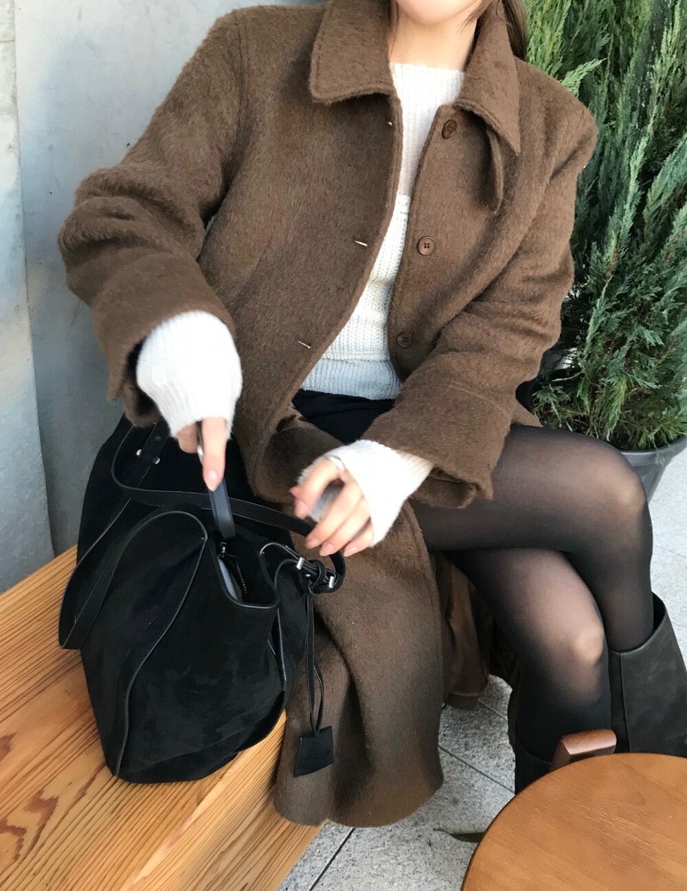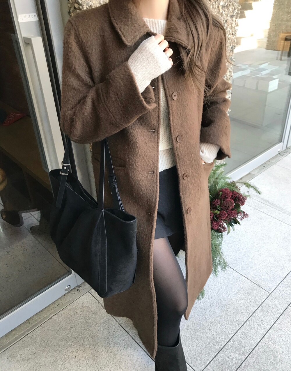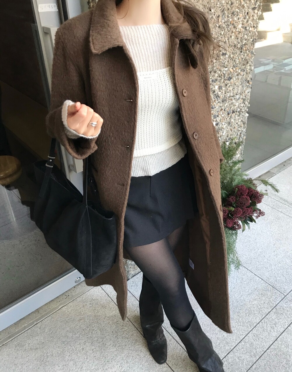 헤어리한 텍스처가 유니크한 무드의 롱 코트입니다