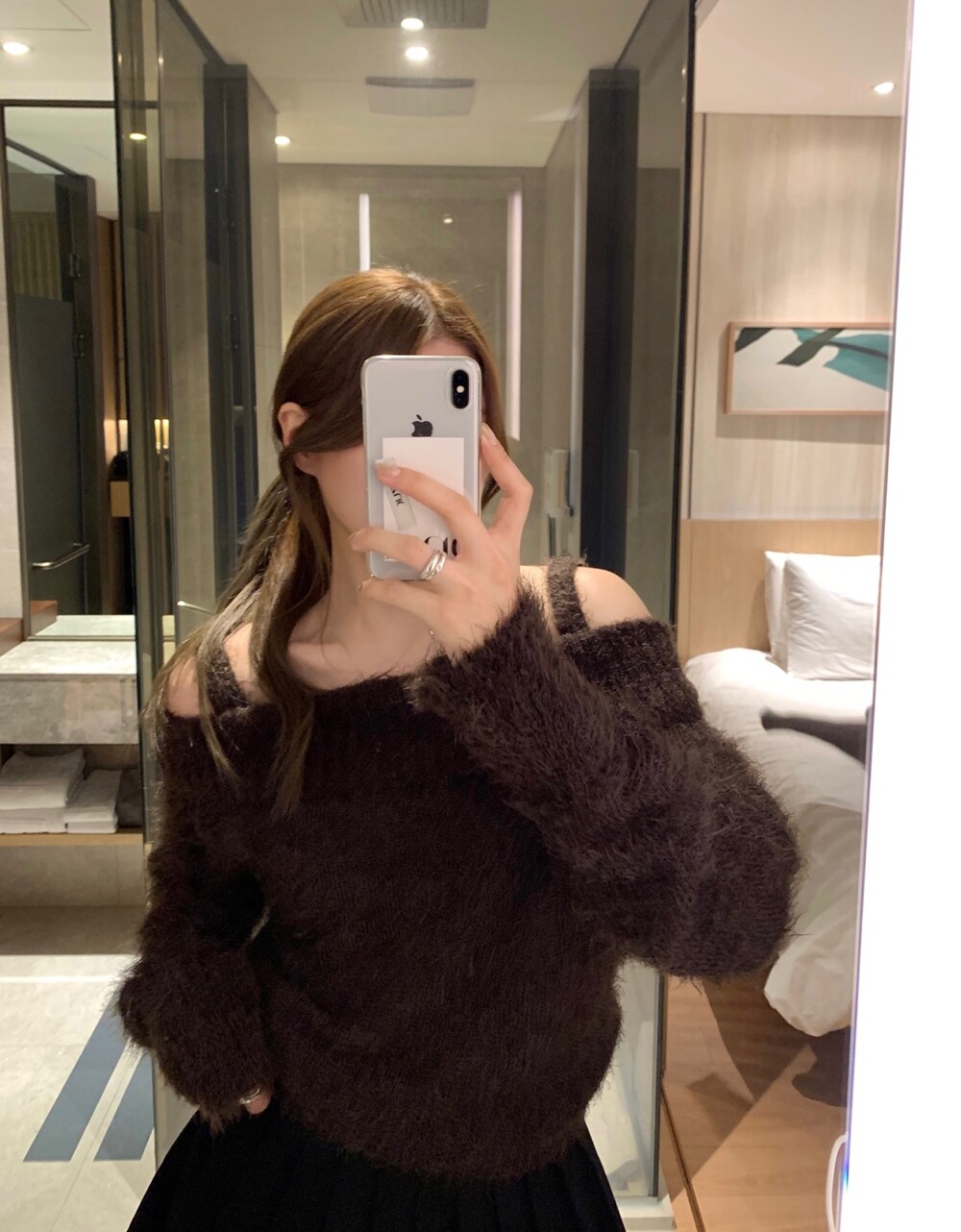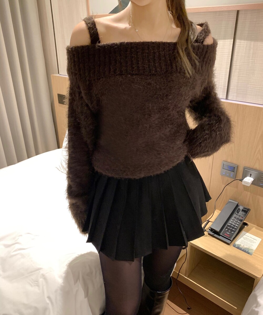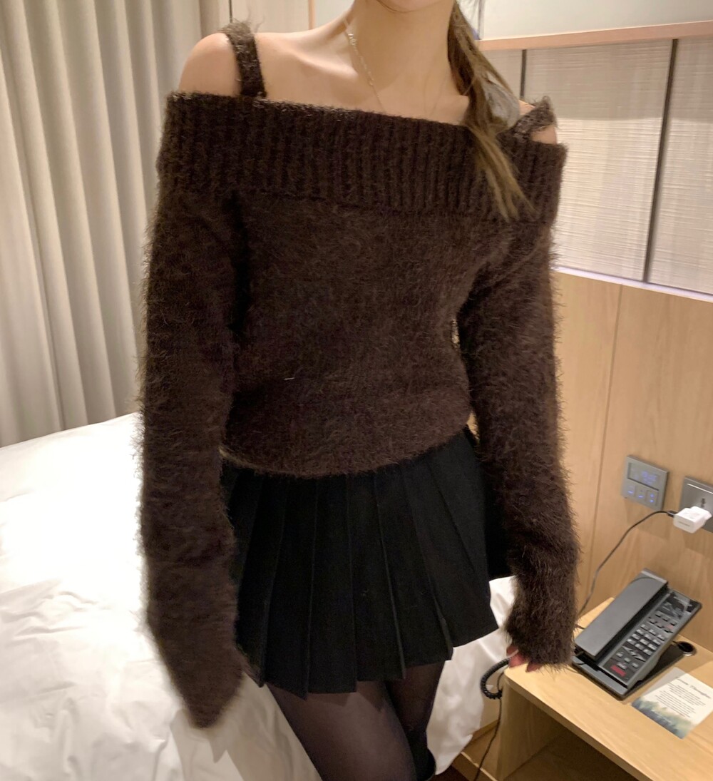 오프숄더 디자인이지만 어깨 끈이 부착되어있어