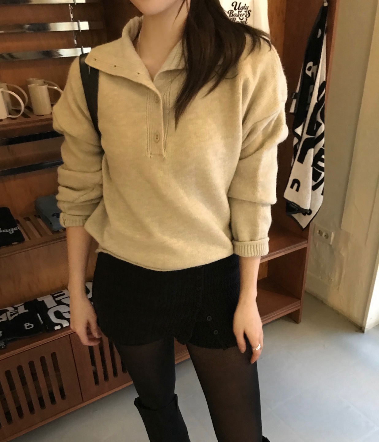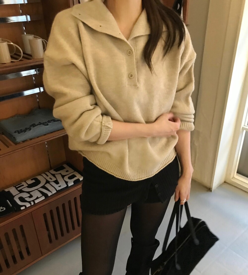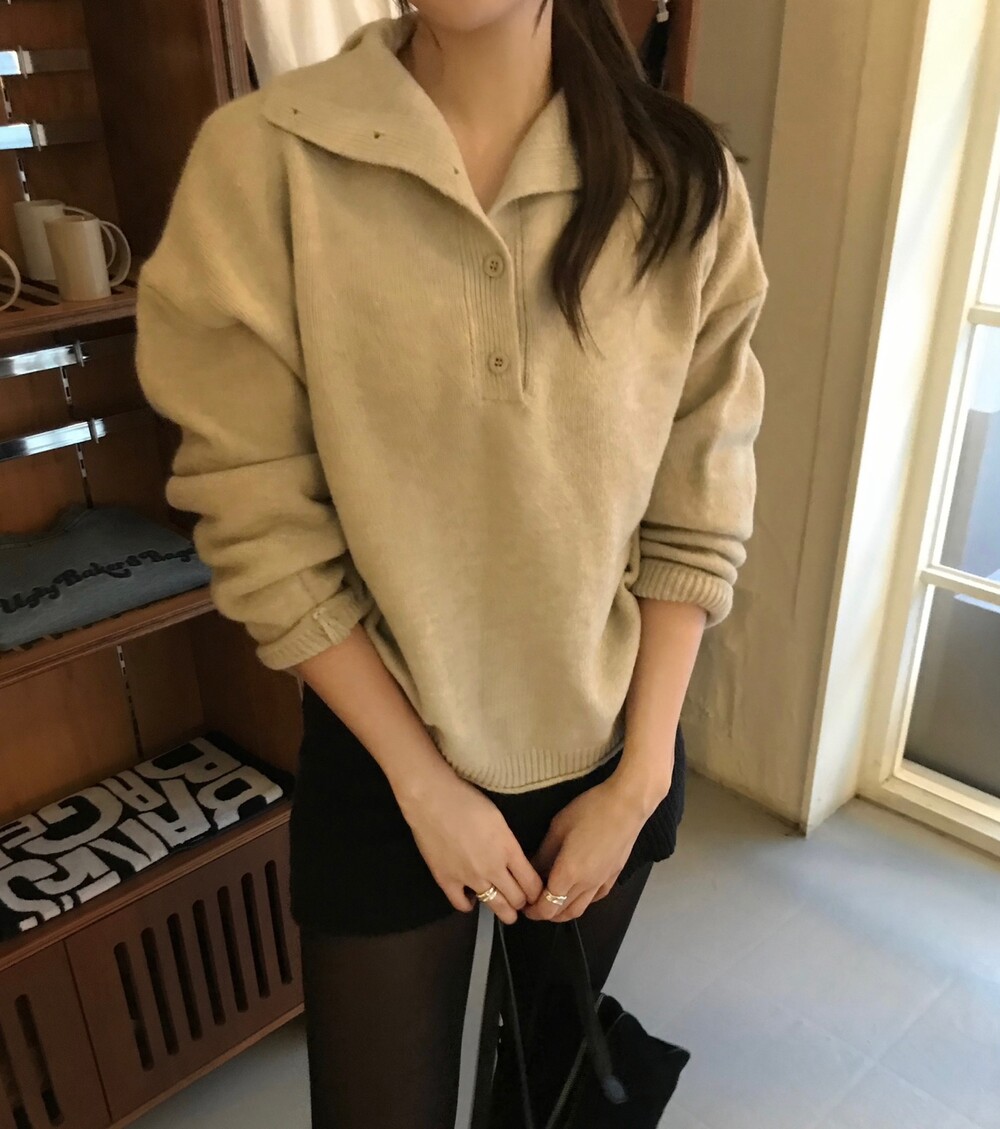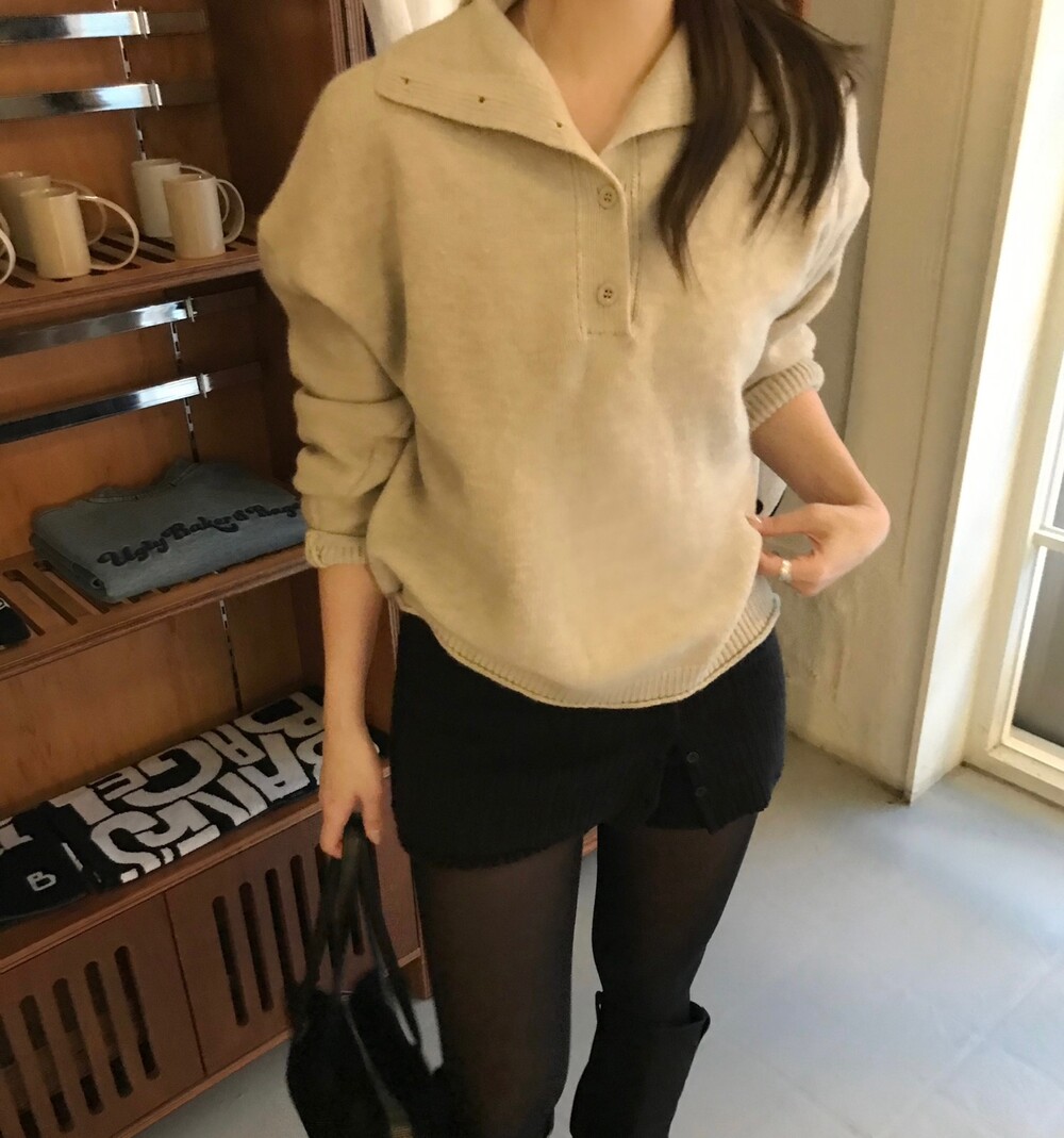 버튼 디테일로 하이넥 폴라 연출이 가능해