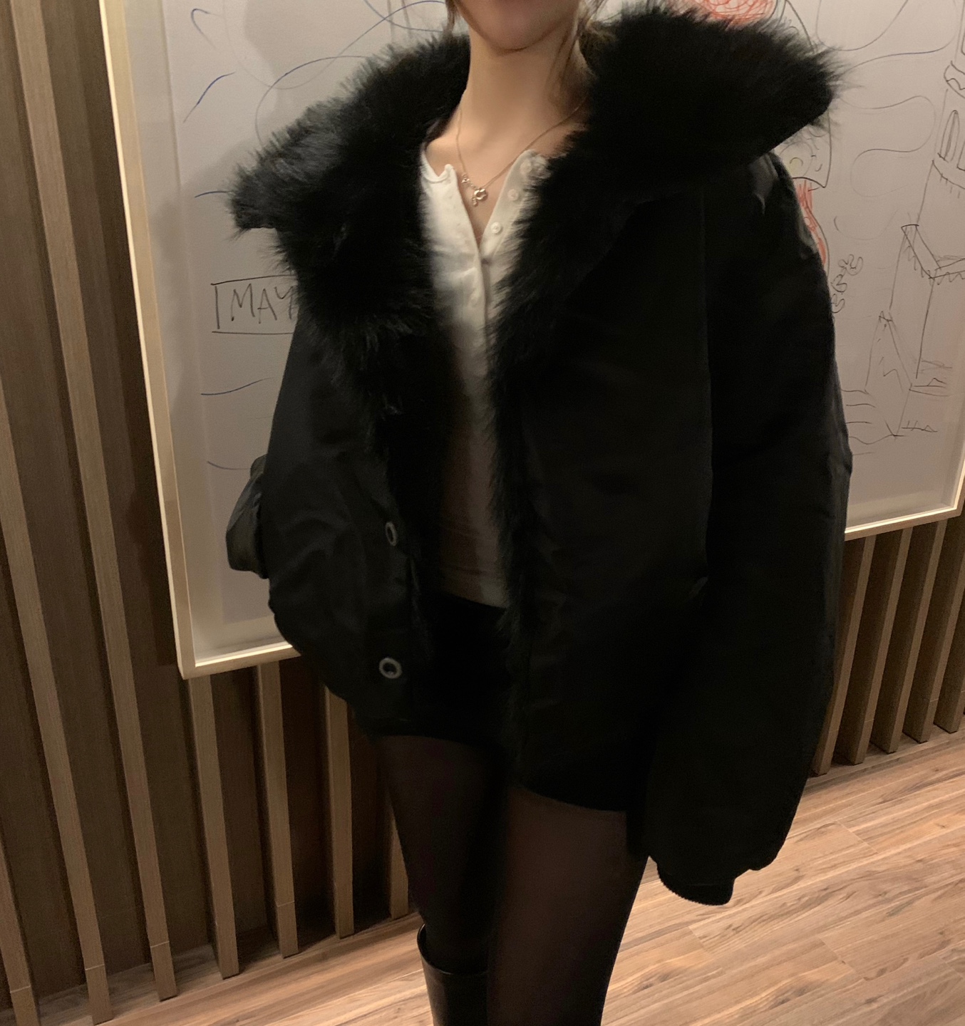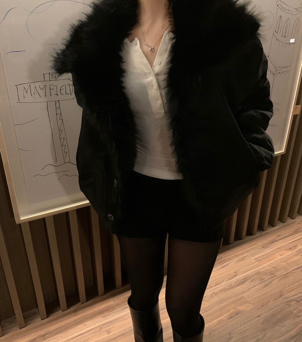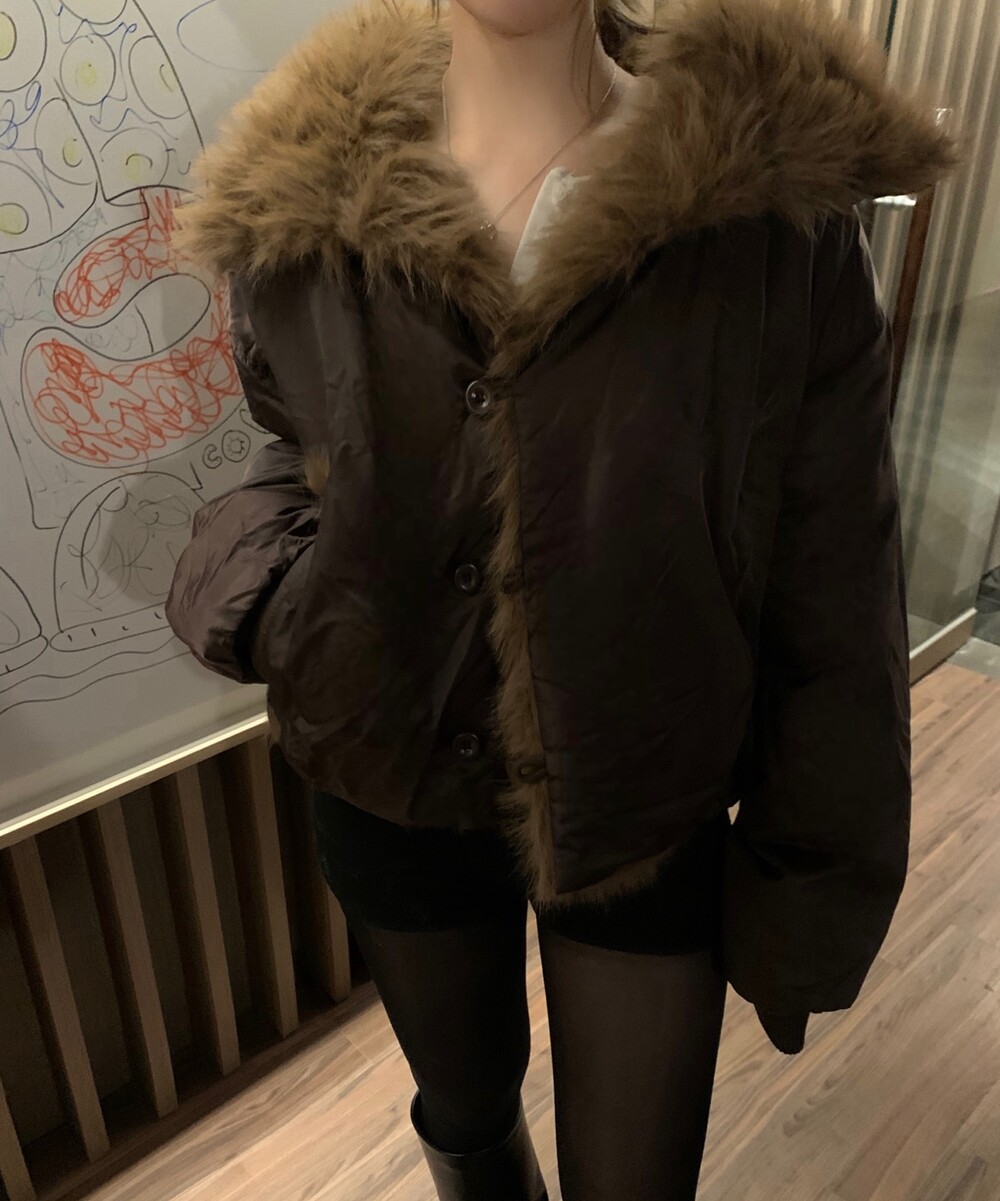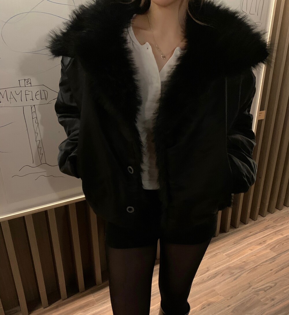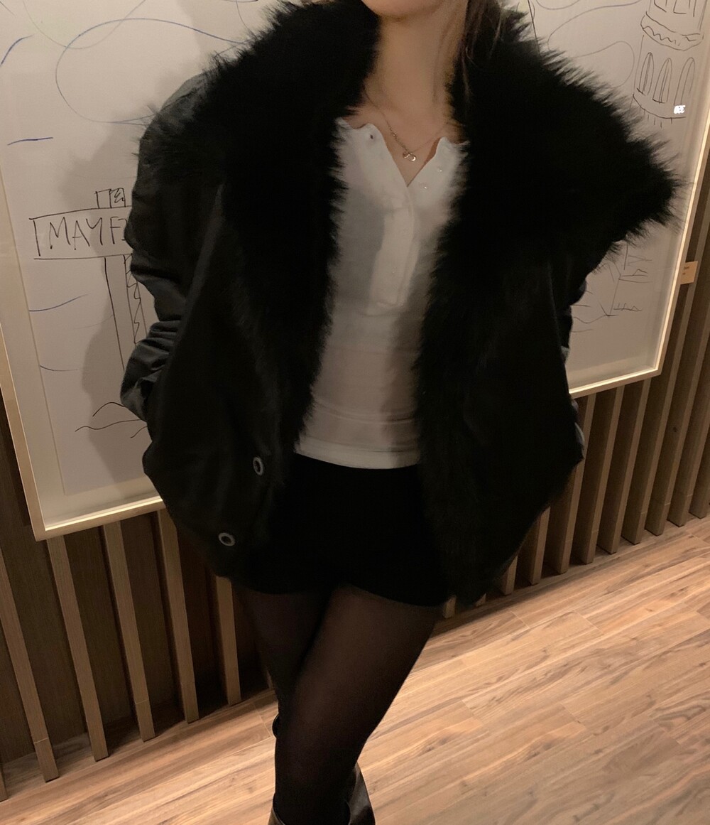 항공 점퍼 무드에 풍성한 퍼 디테일을 더한 자켓입니다